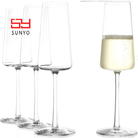 طقم SUNYO من 4 أكواب زجاجية لغسالة الصحون كريستال آمن خالٍ من الرصاص ونظارات/مزامير ميموسا متينة