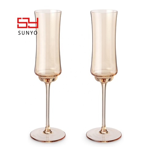 مجموعة من 2 حرفة يدوية مخصصة بلون العنبر الملون أقداح الشرب معقمة Prosecco أو Tulip تألق