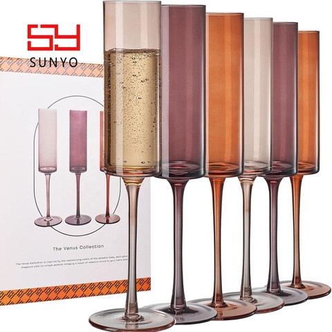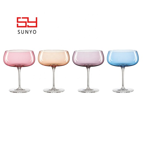 مشغولات يدوية مخصصة عتيقة ذات جودة طويلة غسالة صحون آمنة وردي أرجواني أزرق أصفر كوبيه شمبانيا كوخ زجاج كووبيه